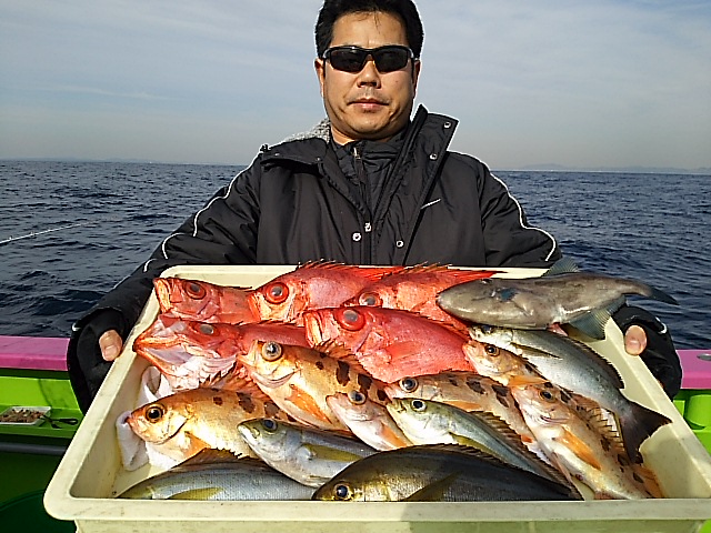 今日も朝一番から好反応有って、キントキ、良型沖メバル、イサキ主体で1日アタリ活発!クーラー満タン!絶好調でした。